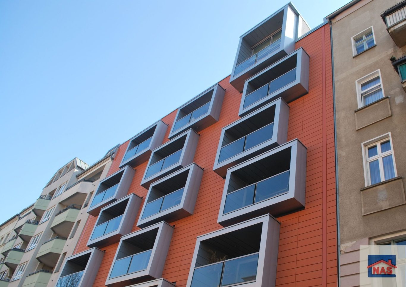 In der Nikolsburger Straße 2–4 in Berlin-Wilmersdorf wurde das ehemalige Jugendhotel aus den 1930er-Jahren zu einem Wohngebäude mit 55 Wohnungen umgebaut. Der Bestandsbau umfasst fünf Vollgeschosse, ein Dachgeschoss sowie ein Untergeschoss mit Technik- und Nebenräumen. Die Erschließung erfolgt über drei Eingänge mit Treppen und 7-stufigen Aufzügen.